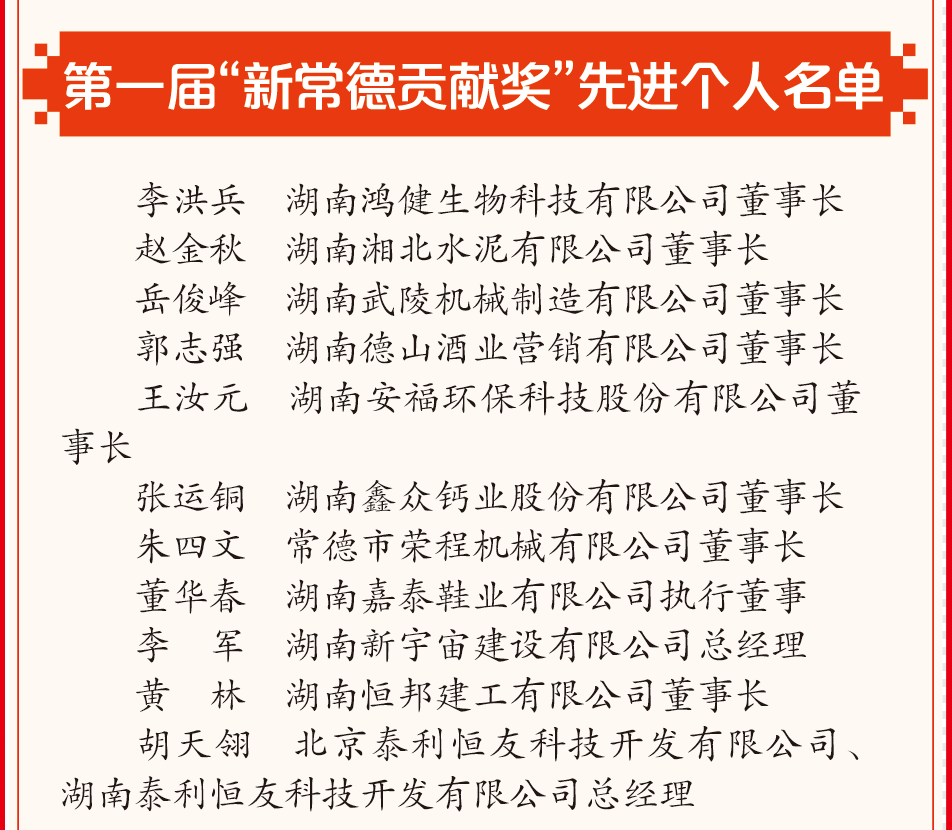 喜讯!董事长岳俊峰获评第一届“新常德贡献奖”先进个人,武陵机械上榜2022年常德民营企业30强