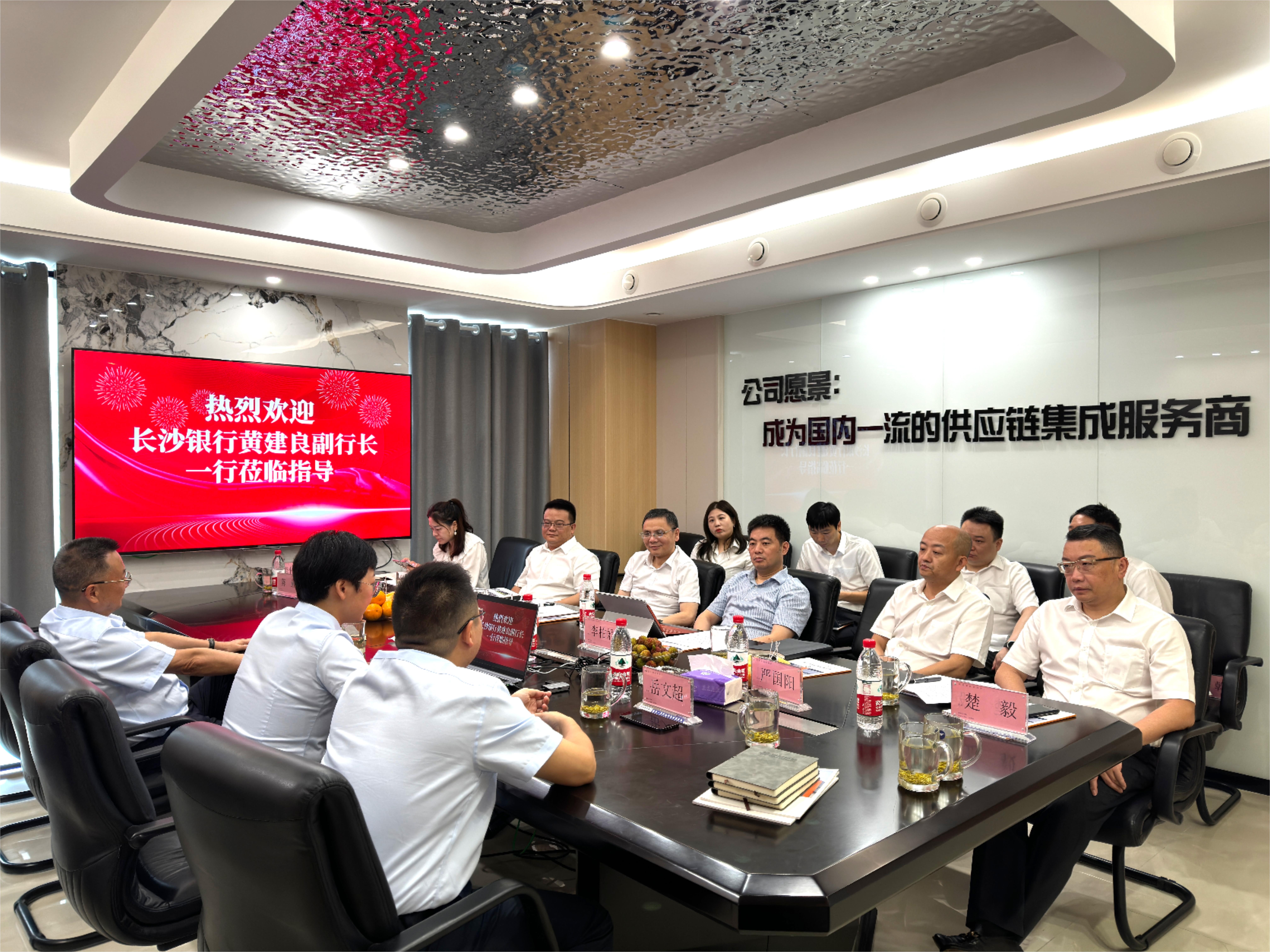 6月17日上午,长沙银行总行副行长兼首席风险官黄建良一行到访我司,同行的还有总行授信审批部、风险管理部、法律合规部及资产保全部及长沙银行华龙支行张宇行长等相关人员。奇异果官网董事长岳俊峰、总经理岳文超及资金管理中心黄电热情接待了黄行长一行。此次会议在我司总部大会议室举行,双方进行了深入的交流,旨在探讨双方在未来可能开展的合作项目及发展战略。