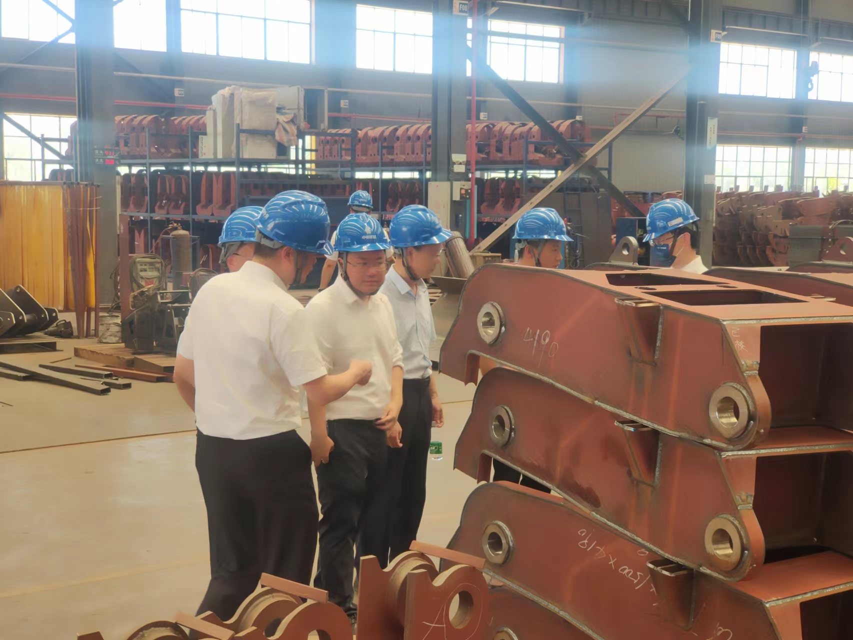 董事长岳俊峰带领郑煤机集团一行到车间参观,介绍了奇异果官网企业文化、企业运营、工艺技术、生产进度等各方面情况。双方就中钢智能产品的技术规范、制作要点、质量控制目标等进行了深入细致的探讨,客户对我们的加工工艺和生产能力表示很满意,相信这次的参观交流,会为将来双方的长期合作奠定基础。